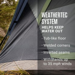 No need to worry about unexpected weather—the WeatherTec™ system with its tub-like floor, welded corners, and inverted seams helps keep you and your gear dry even in heavy rain. The strong frame is tested to withstand winds up to 35 mph, ensuring peace of mind during stormy conditions.
